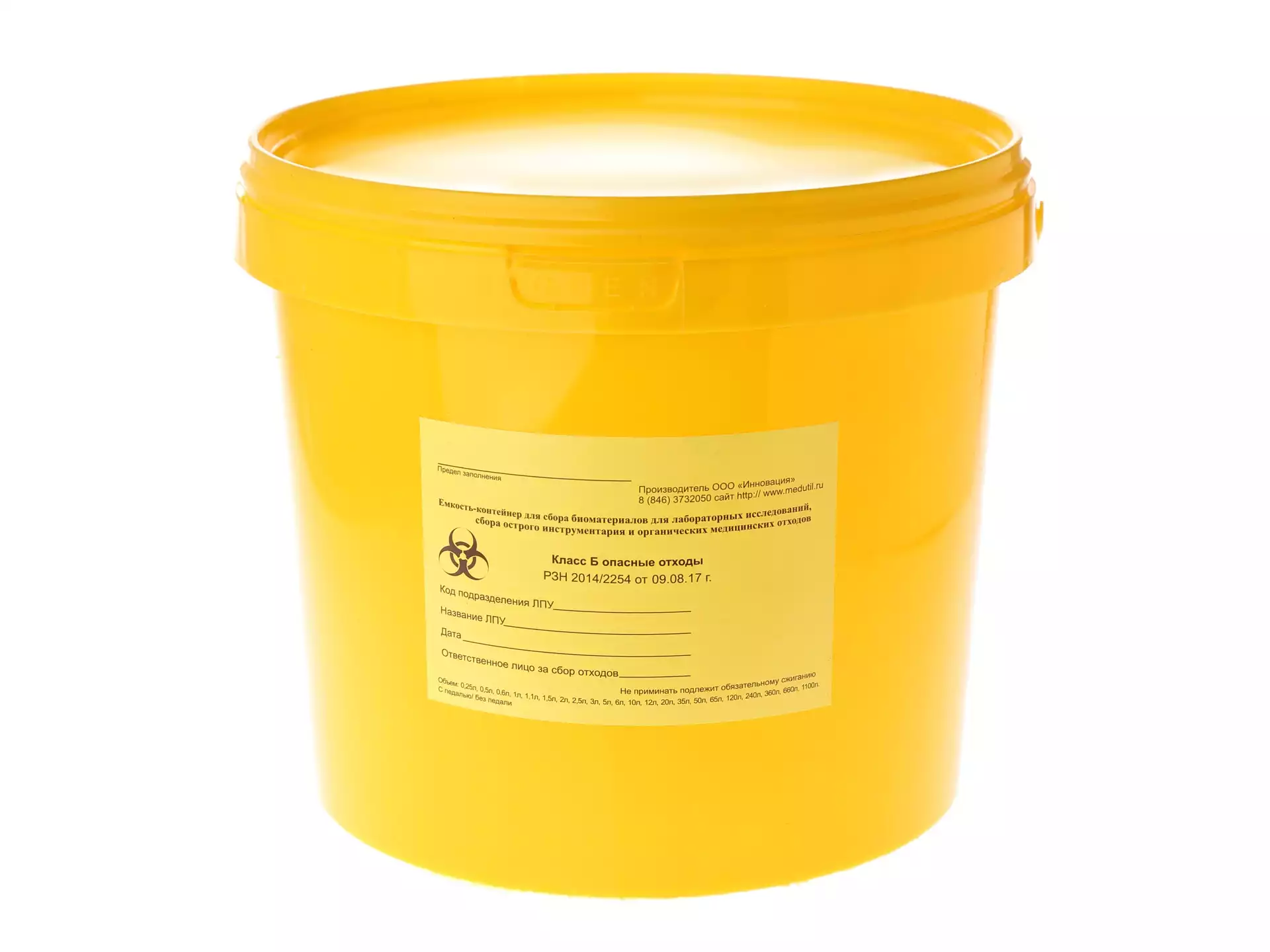 Емкость-контейнер для сбора органических отходов, объем 3,0л, класс Б, желтая, одноразовая, Инновация (РОССИЯ)