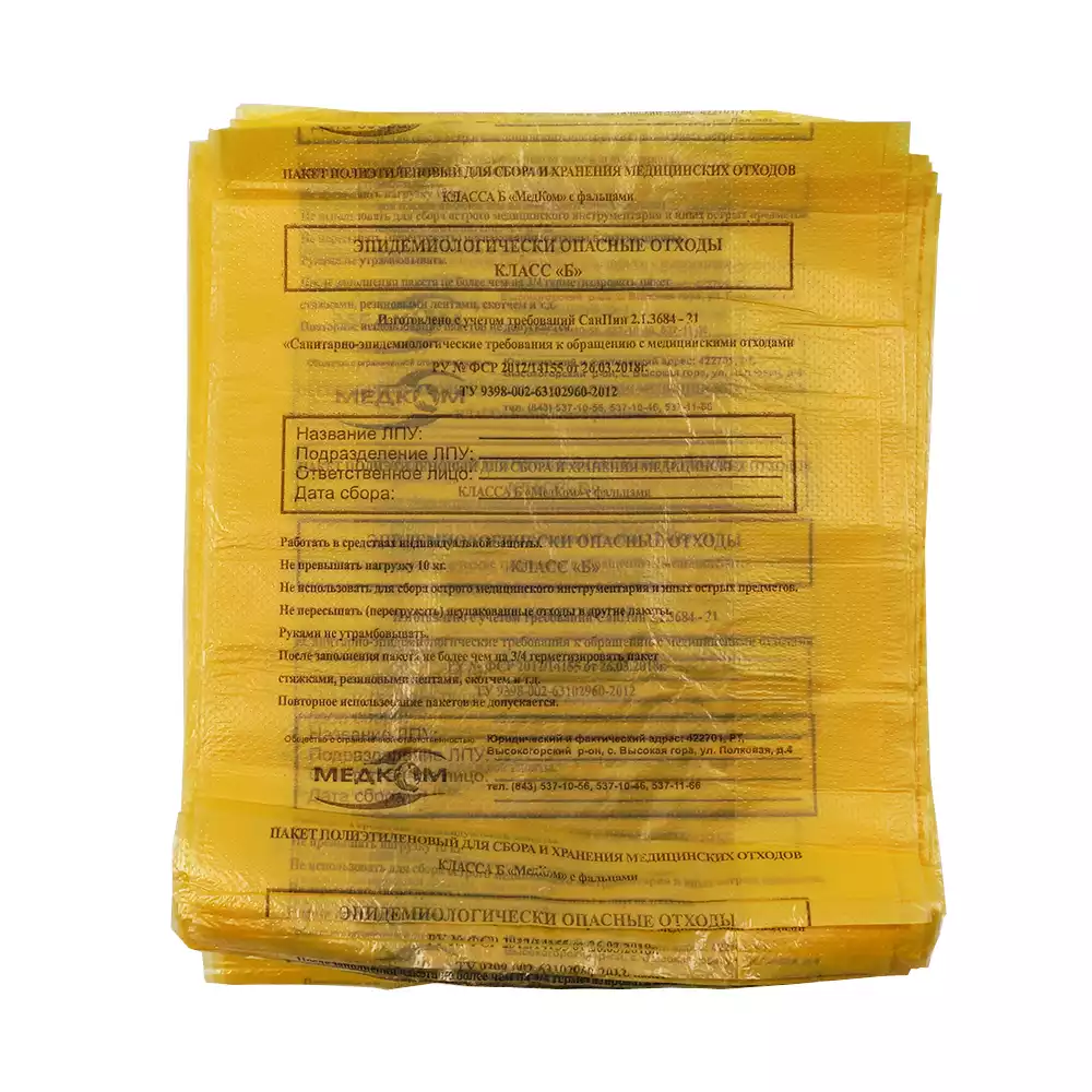 Пакет для сбора медицинских отходов, класс Б (желтый), размер 330х600мм, объем 10-12л, плотность 10 микронМедКом НПФ (РОССИЯ), 100 шт