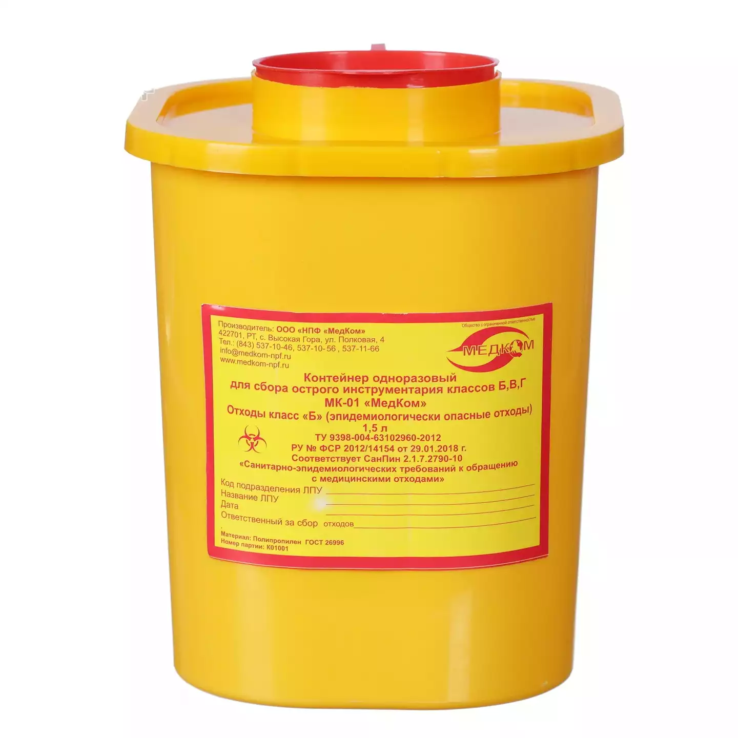 Емкость-контейнер для сбора острого инструментария (с иглосъемником), объем 1,5л (класс Б), желтая, одноразоваяМедКом НПФ (РОССИЯ)