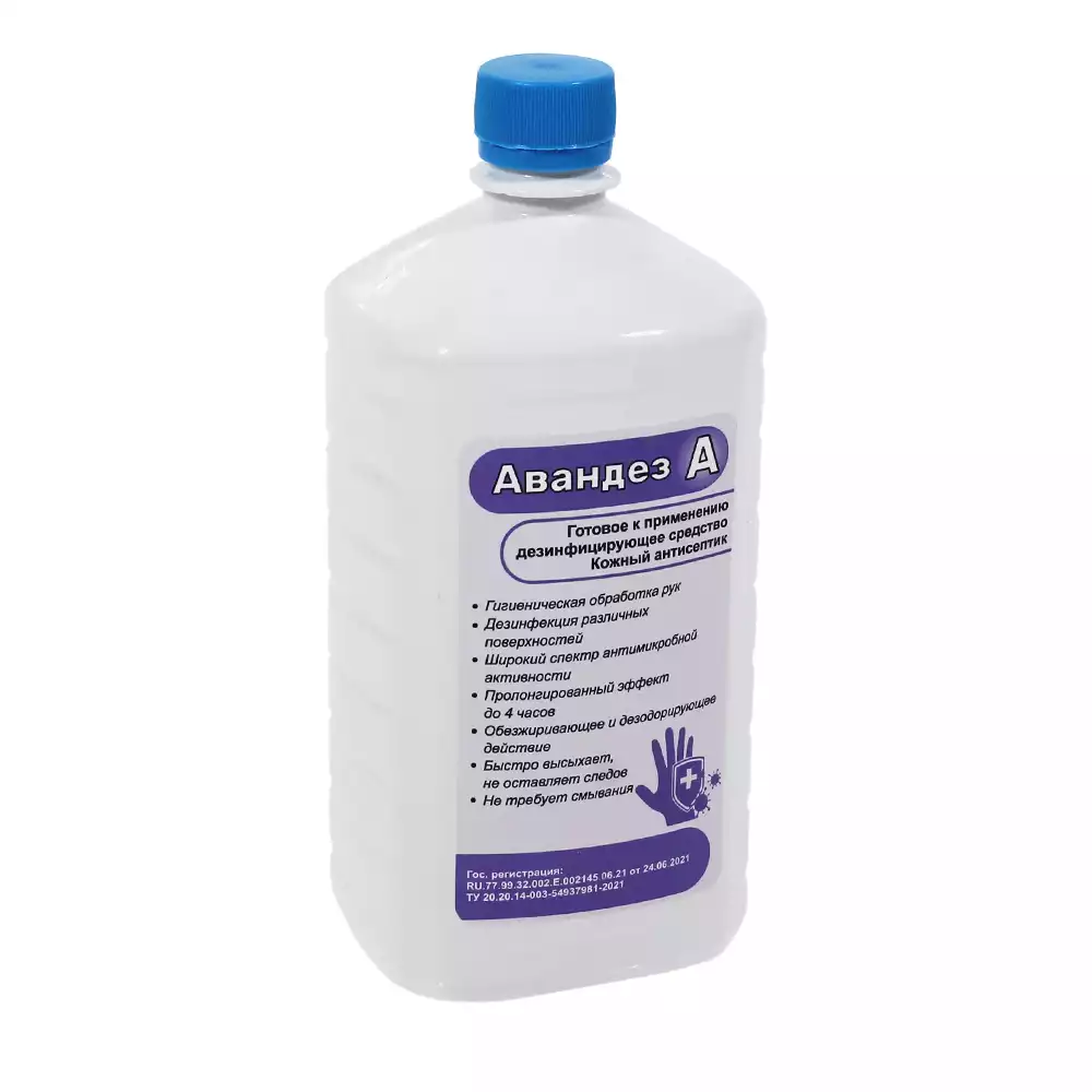 Авандез - А 1,0л, кожный антисептик и дезинфектант для поверхностей (готовый раствор), изопропиловый спирт – 70%, Дезос (РОССИЯ)