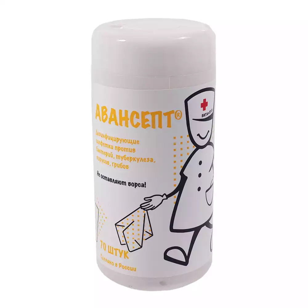 Салфетки "Авансепт" дезинфицирующие, размер 17,0*12,5см, желтые безворсовые, упаковка 70шт, Парити
