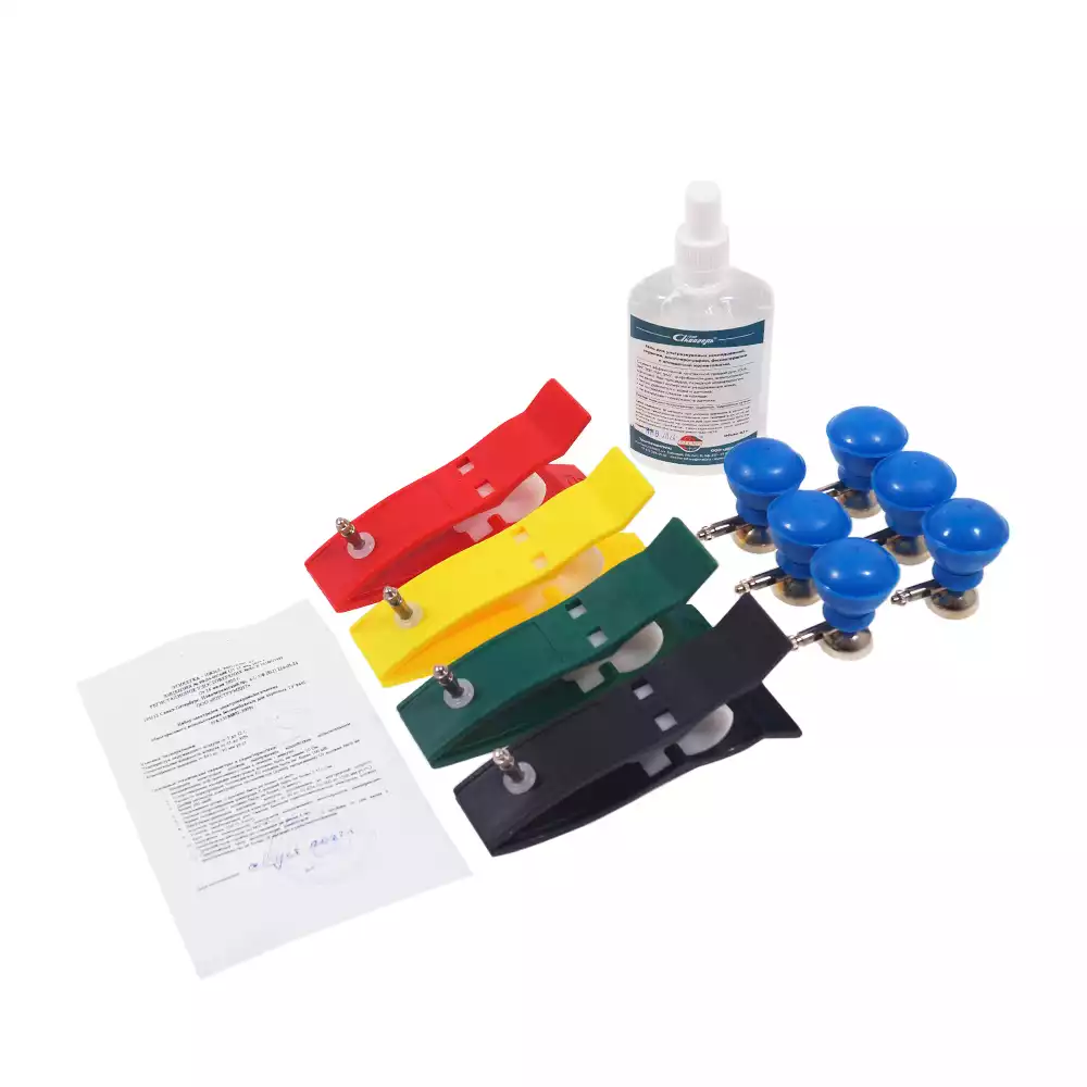 Электроды для ЭКГ (набор) грудные с винтом и зажимом + прищепки, взрослые, многоразовые, Инструмент (РОССИЯ)