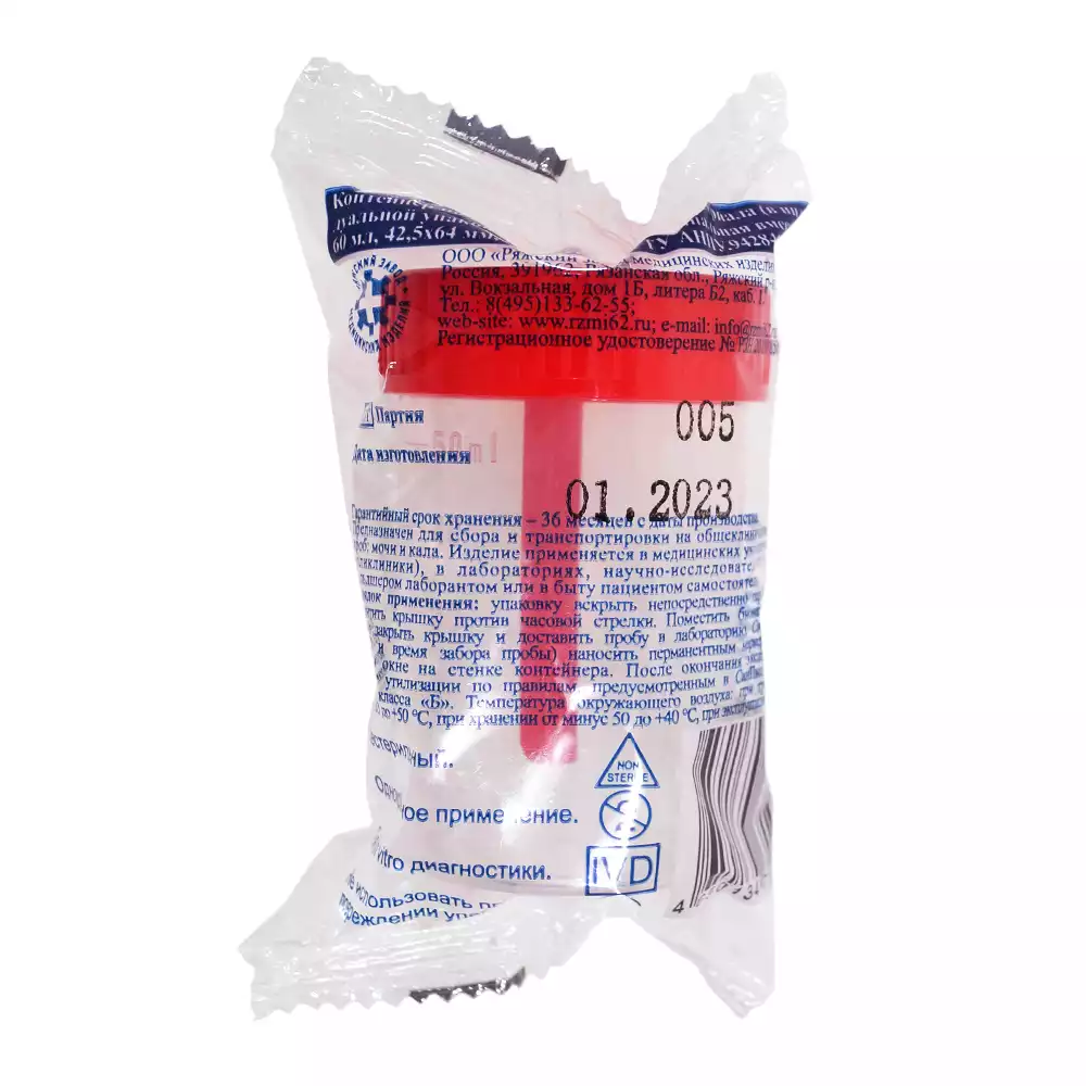 Контейнер 60мл, для взятия биоматериала, нестерильный, без лопаточки, инд.упаковкаРЗМИ (РОССИЯ)