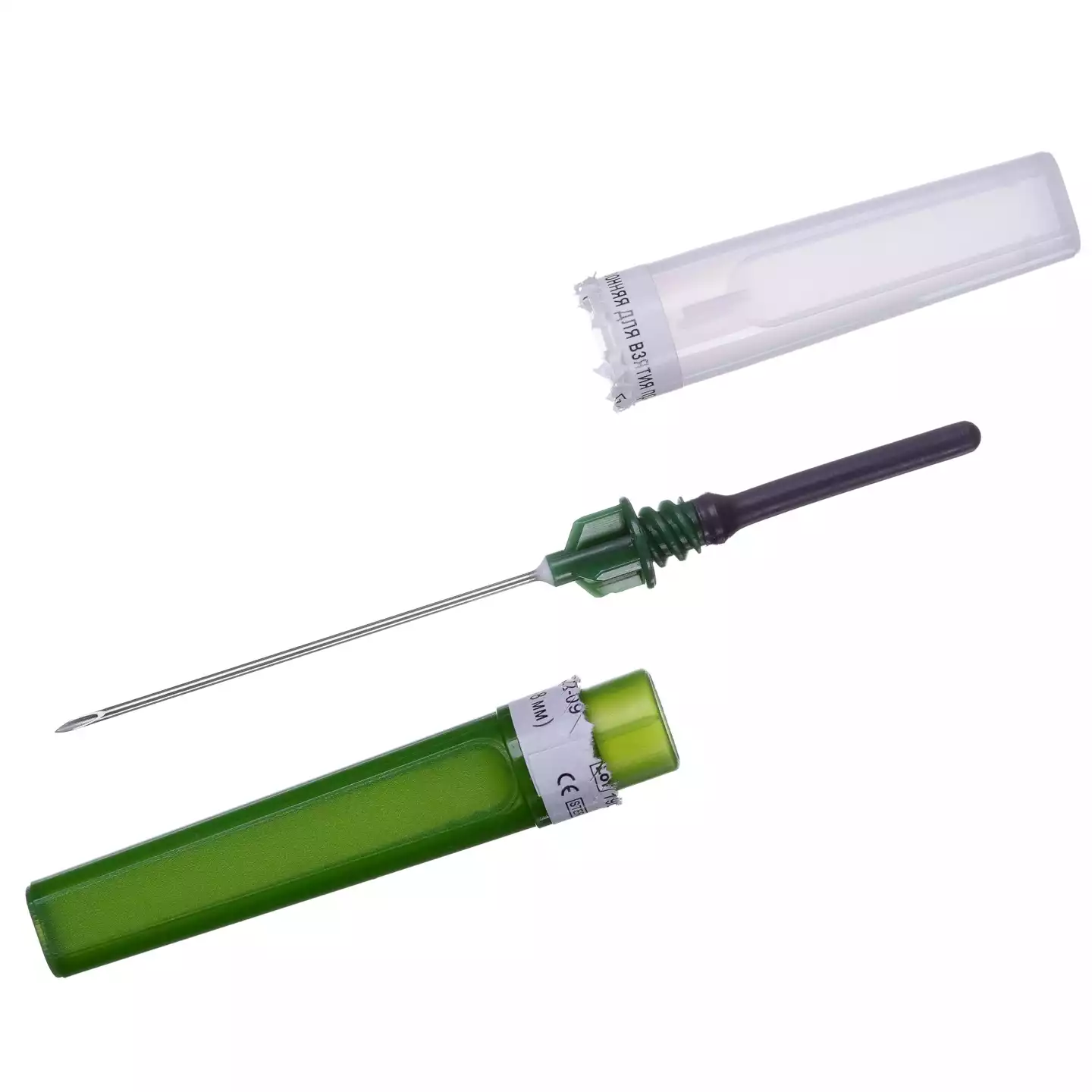 Игла 2-сторонняя 21G*1, 1/8, 0,8*28мм, цвет зелёный, с визуальной камерой, Chengdu Puth Medical Plastics Packaging Co