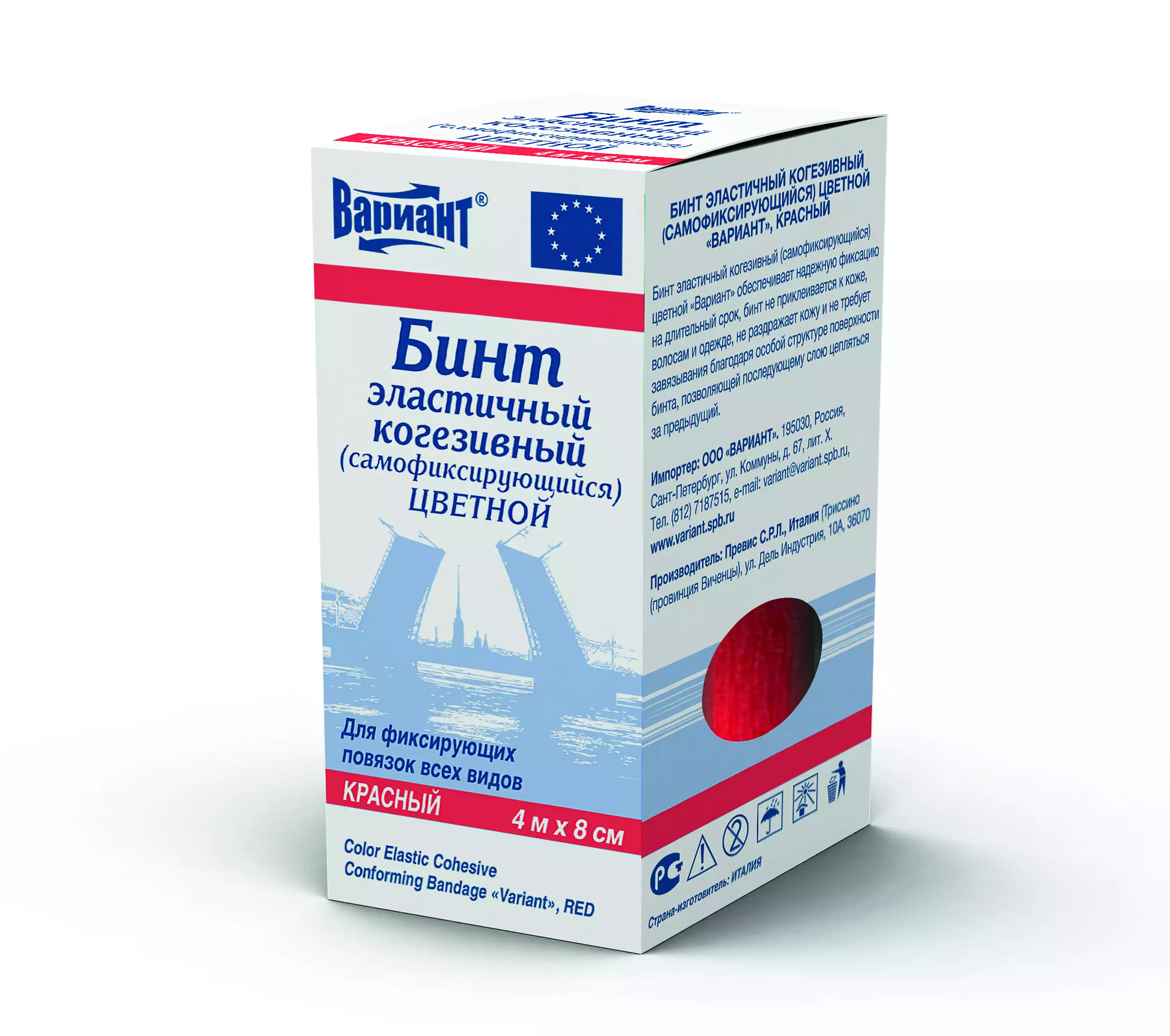 Бинт эластичный "Вариант" cамофиксирующийся когезивный, размер 4м*8см, цвет красныйПревис С.Р.Л. (Италия) (ИТАЛИЯ)
