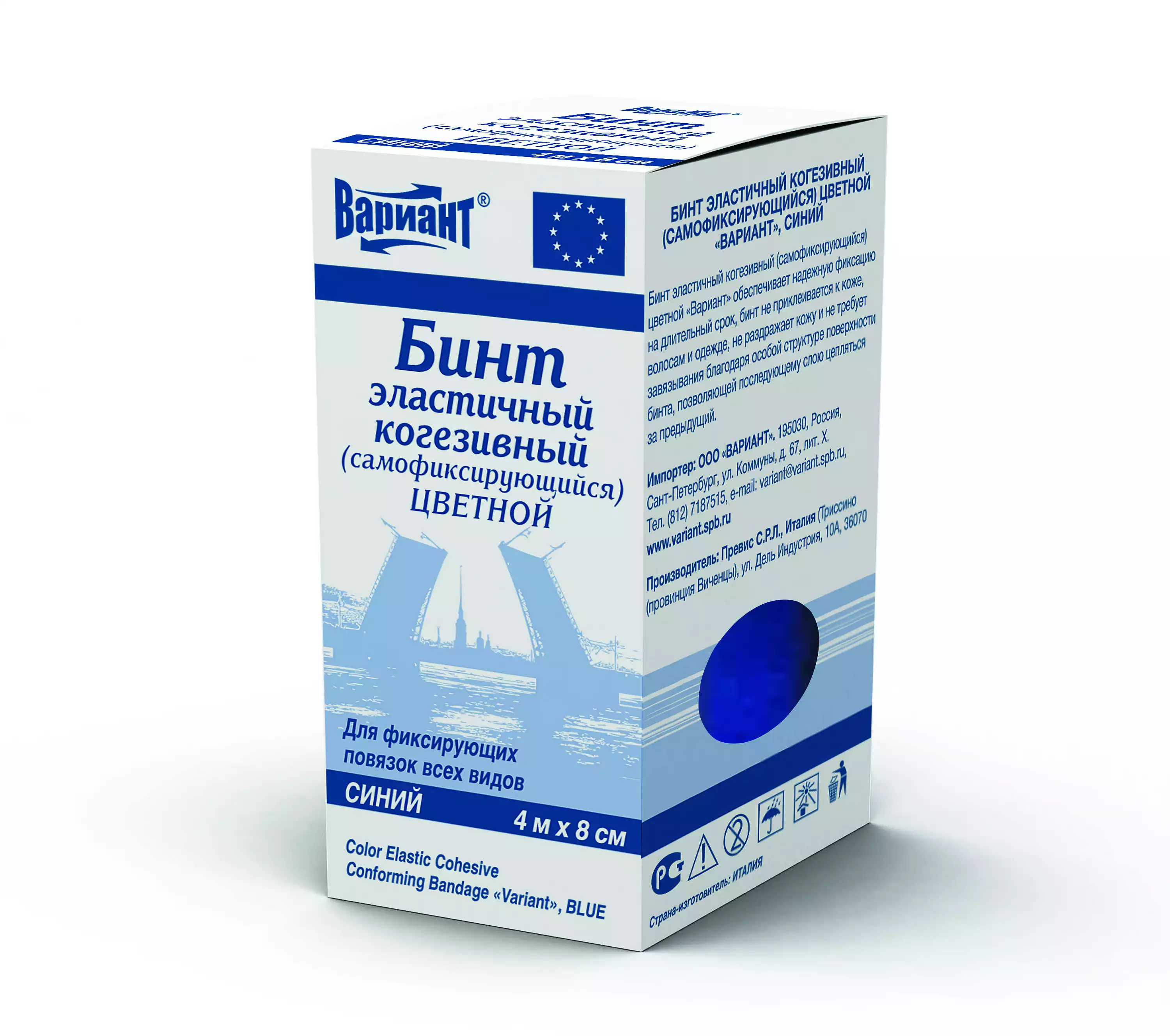 Бинт эластичный "Вариант" cамофиксирующийся когезивный, размер 4м*8см, цвет синийПревис С.Р.Л. (Италия) (ИТАЛИЯ)