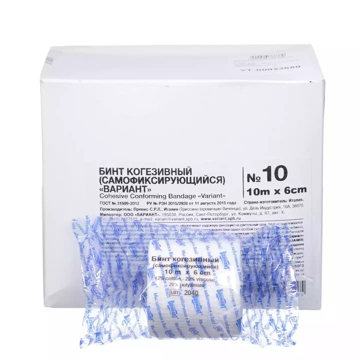 Бинт эластичный "Вариант" cамофиксирующийся когезивный, размер 10м*6см, упаковка 10шт, цвет белыйПревис С.Р.Л. (Италия) (ИТАЛИЯ)