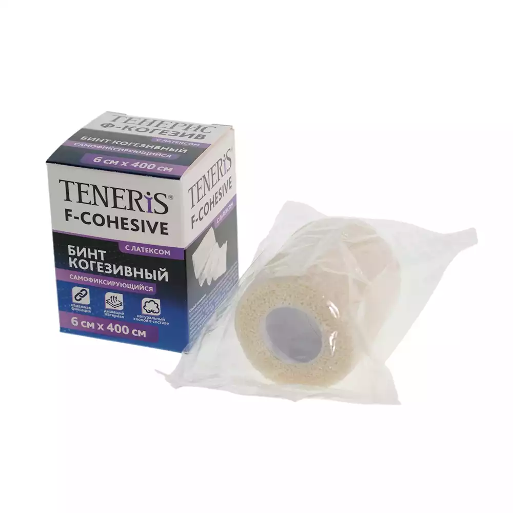 Бинт эластичный "Teneris F-Cohesive" cамофиксирующийся когезивный, с латексом, размер 4м*6см, цвет белыйООО "ХЕЛСЛАБ" (РОССИЯ)