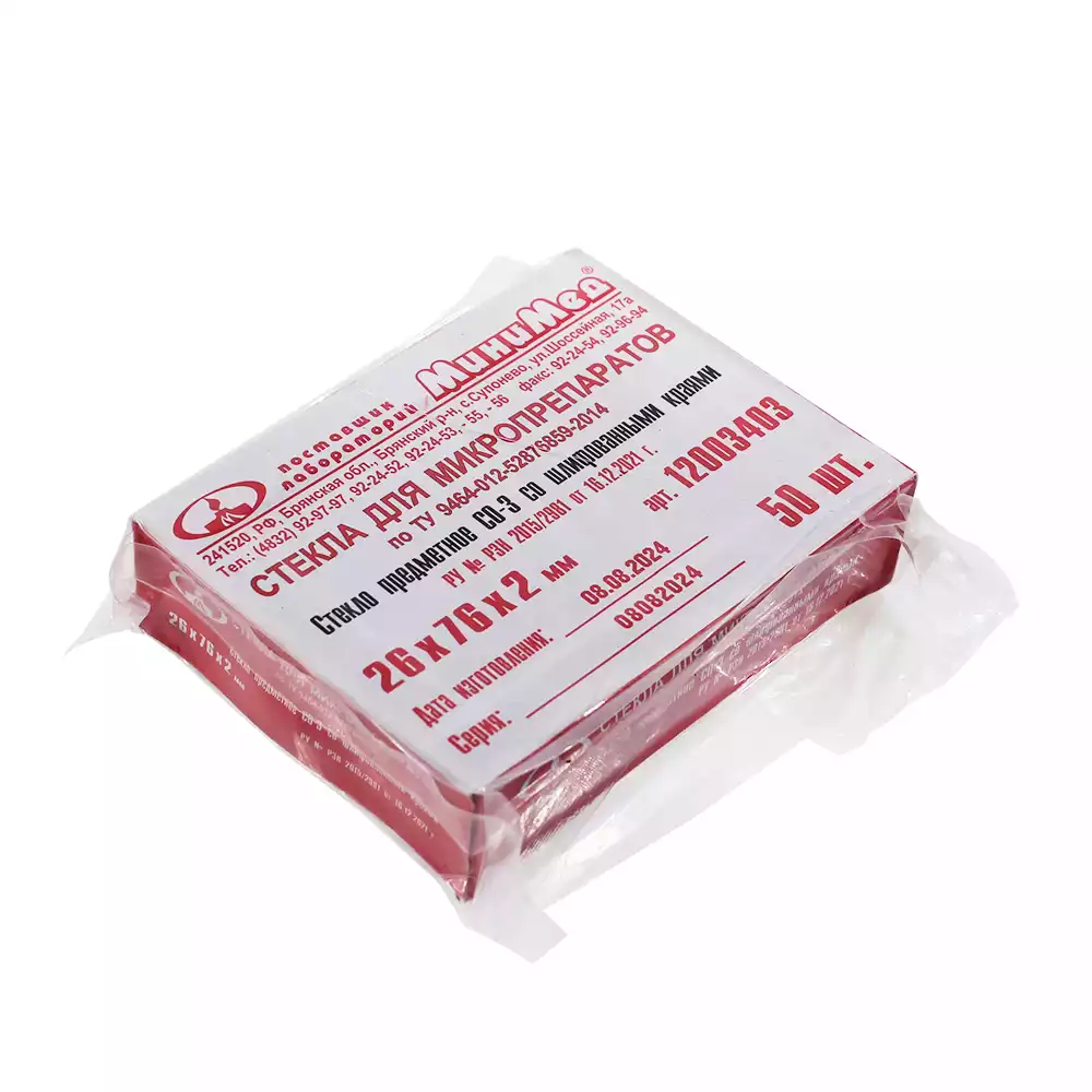 Стекло для микропрепаратов, размер 26*76*2,0мм, предметное СП со шлифованными краямиМиниМед (РОССИЯ), 50 шт