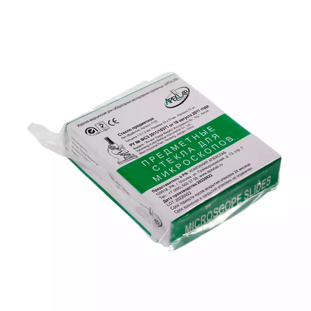 Стекло для микропрепаратов, размер 25*75*1,0-1,2мм, предметное с необработанными краямиYancheng Huida Medical Instruments Co Ltd (КИТАЙ), 72 шт
