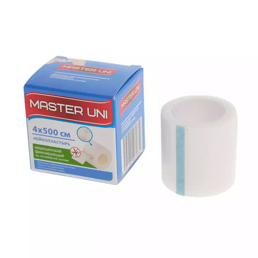 Лейкопластырь Master Uni на полимерной основе,фиксирующий, размер 4см*500см, катушка в картонной коробке, Pharmline s.r.o. (КИТАЙ)