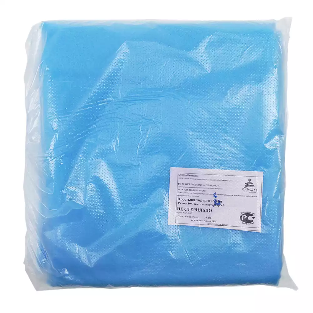 Простыня 70*80см, материал СМС 25г/м2, нестерильная, голубая, Инмедиз (РОССИЯ), 10 шт