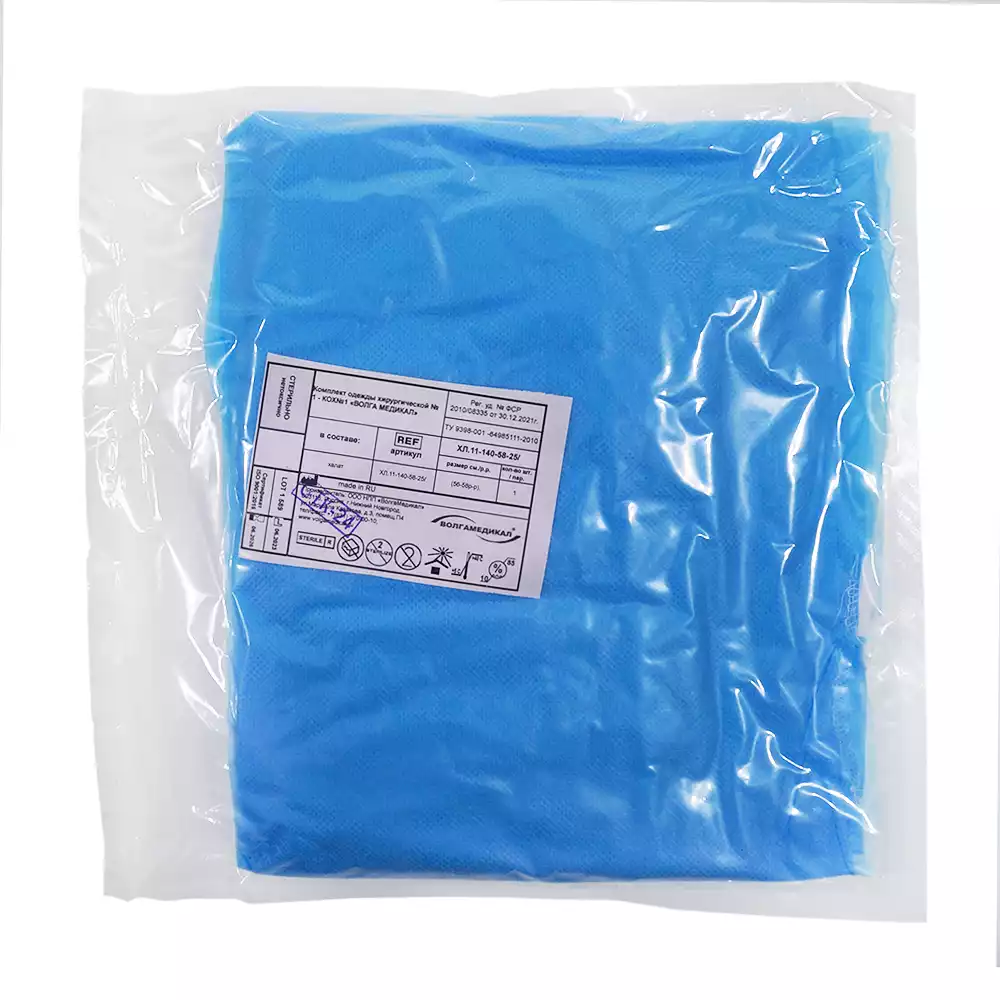 Халат хирургический ЕВРО, длина 140см, материал СМС 25г/м2, размер 56-58, стерильный, Волга Медикал НПП (РОССИЯ)