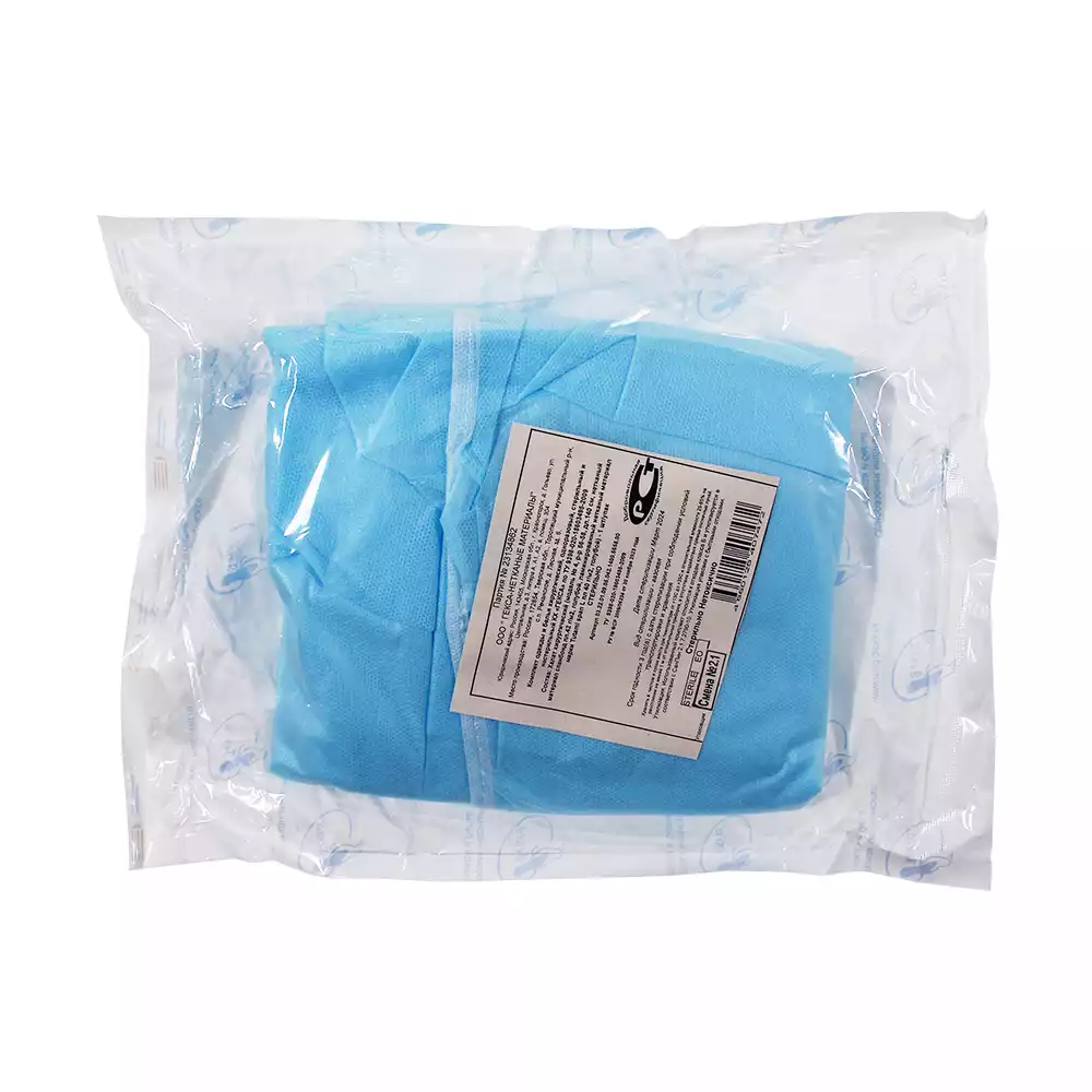 Костюм хирургический, СМС42г/м2, размер 52-54, рукав длинный, стерильный, Волга Медикал НПП (РОССИЯ)