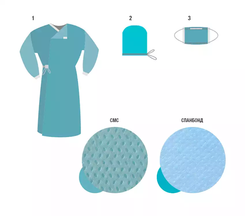 Халат хирургический ЕВРО, длина 140см, материал СММС 42г/м2 + ламинат, с усиленной защитной зоной, размер 56-58, стерильный, Инмедиз (РОССИЯ)