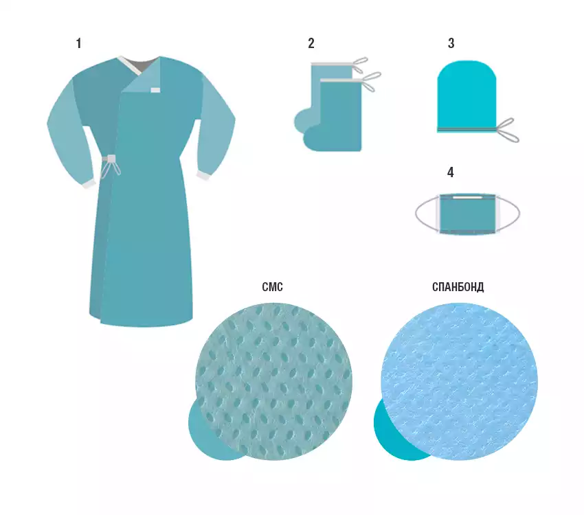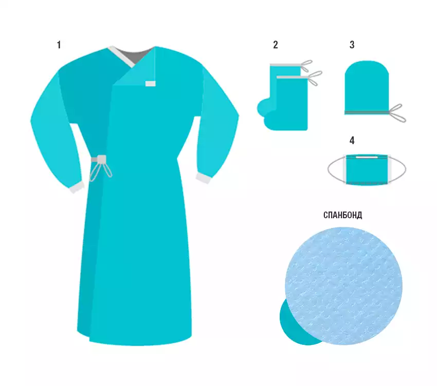 Комплект одежды хирургический КХ Гекса-01 спанбонд 42г/м2, стерильный, Гекса-нетканые материалы (РОССИЯ)
