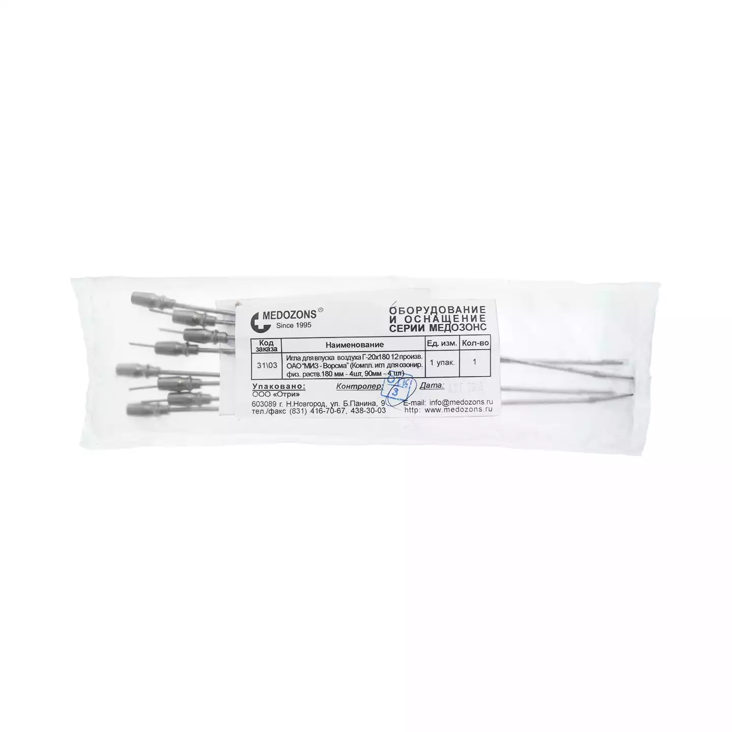 Комплект игл для озонирования физиологических растворов (иглы 180мм - 4шт, иглы 90мм - 4шт) Внимание! нужно фото шильдика аппарарата., МИЗ-Ворсма (МИЗ им.В.И.Ленина) (РОССИЯ)