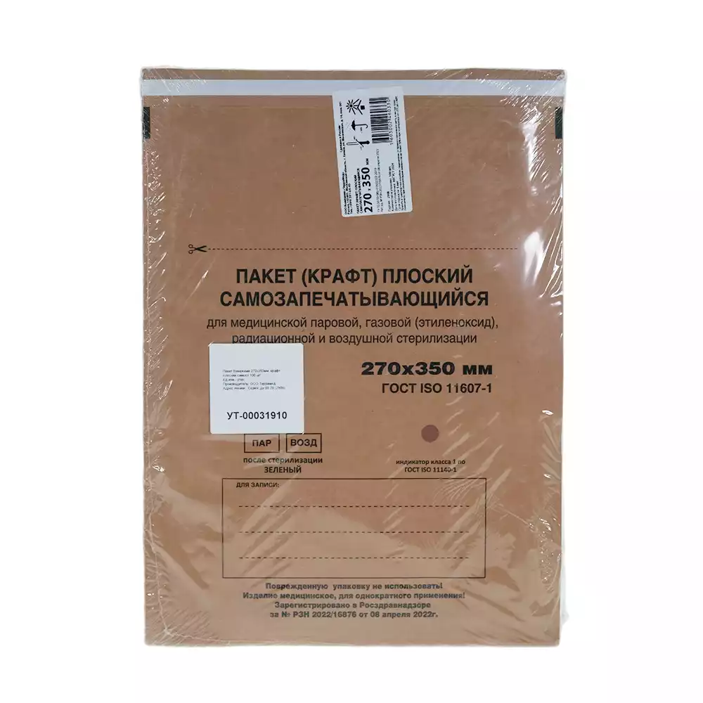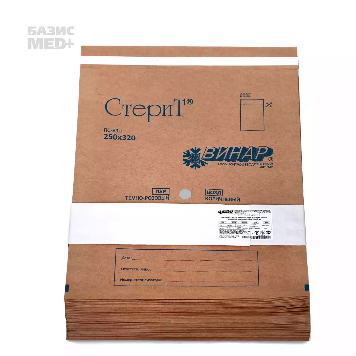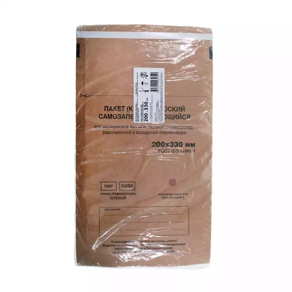 Пакет СтериТ, размер 200*330мм, бумажный, крафт, самоклеющийся, упаковка 100шт, Винар НПФ (РОССИЯ)