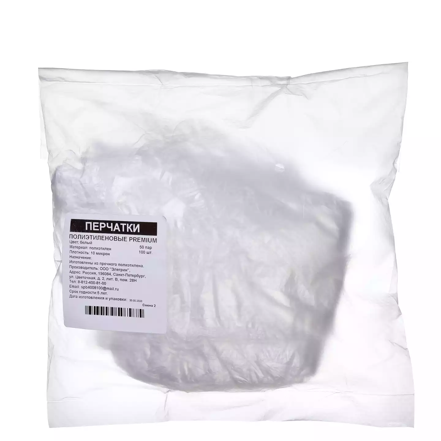 Перчатки полиэтиленовые одноразовые прозрачные р. L, 8 мкр, PREMIUM, 50 пар/упаковка, Элегрин (РОССИЯ), 50 пар