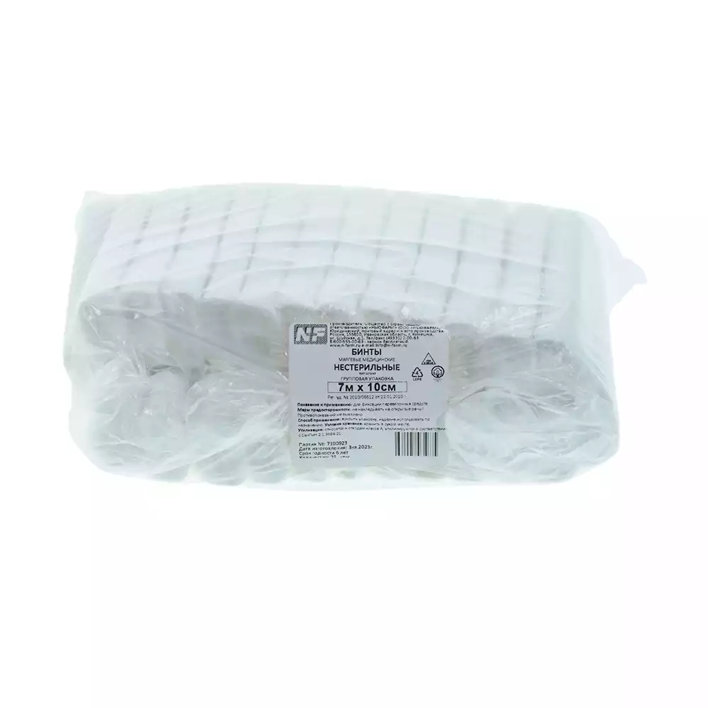 Бинт NF марлевый, размер 7м*10см, плотность 32г/м2, нестерильныйНьюфарм (РОССИЯ), 25 шт