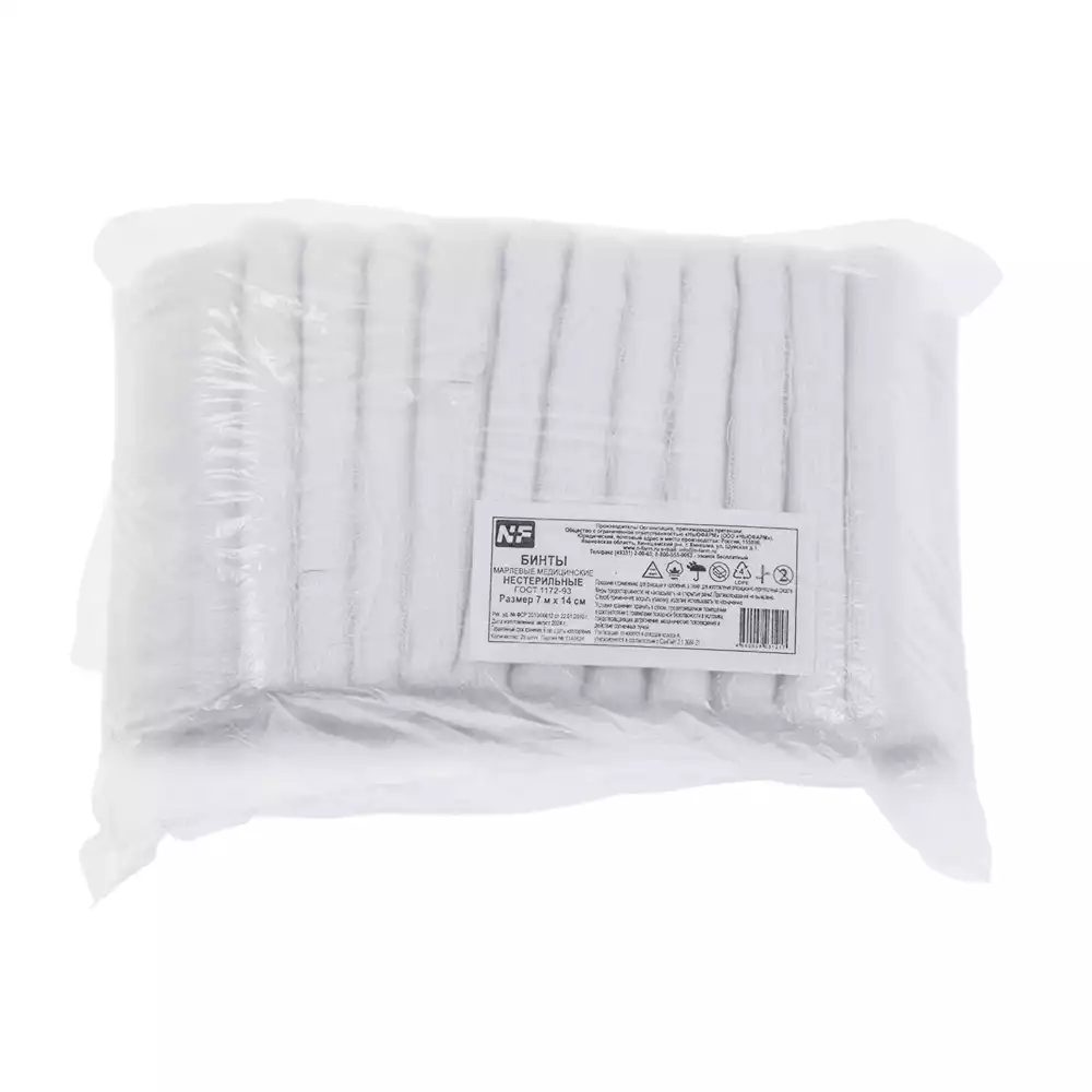 Бинт NF марлевый, размер 7м*14см, плотность 36г/м2, нестерильныйНьюфарм (РОССИЯ), 25 шт
