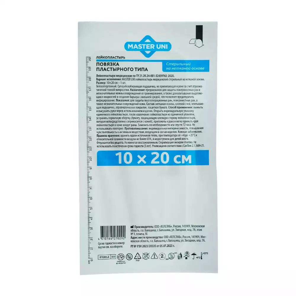 Повязка Master Uni нетканная, размер 20,0*10,0см, стерильнаяООО "ХЕЛСЛАБ" (РОССИЯ)
