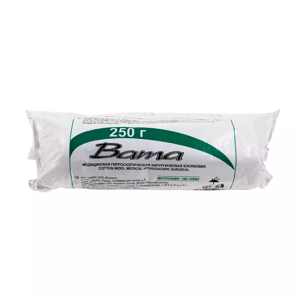 Вата 250,0г медицинская хирургическая нестерильнаяРусВата (РОССИЯ), 50 шт