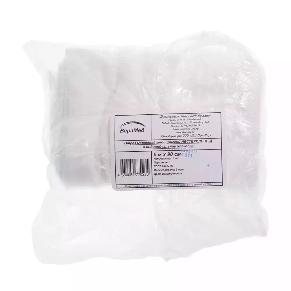 Марля медицинская, ширина 90см, отрез 5м, плотность 32г/м2Верамед (РОССИЯ)