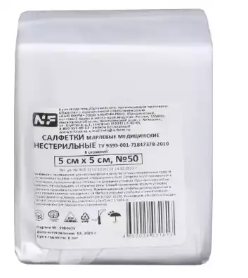 Салфетки марлевые медицинские нестерильные 5см*5см №50, 8 сложений 32г NFНьюфарм (РОССИЯ)