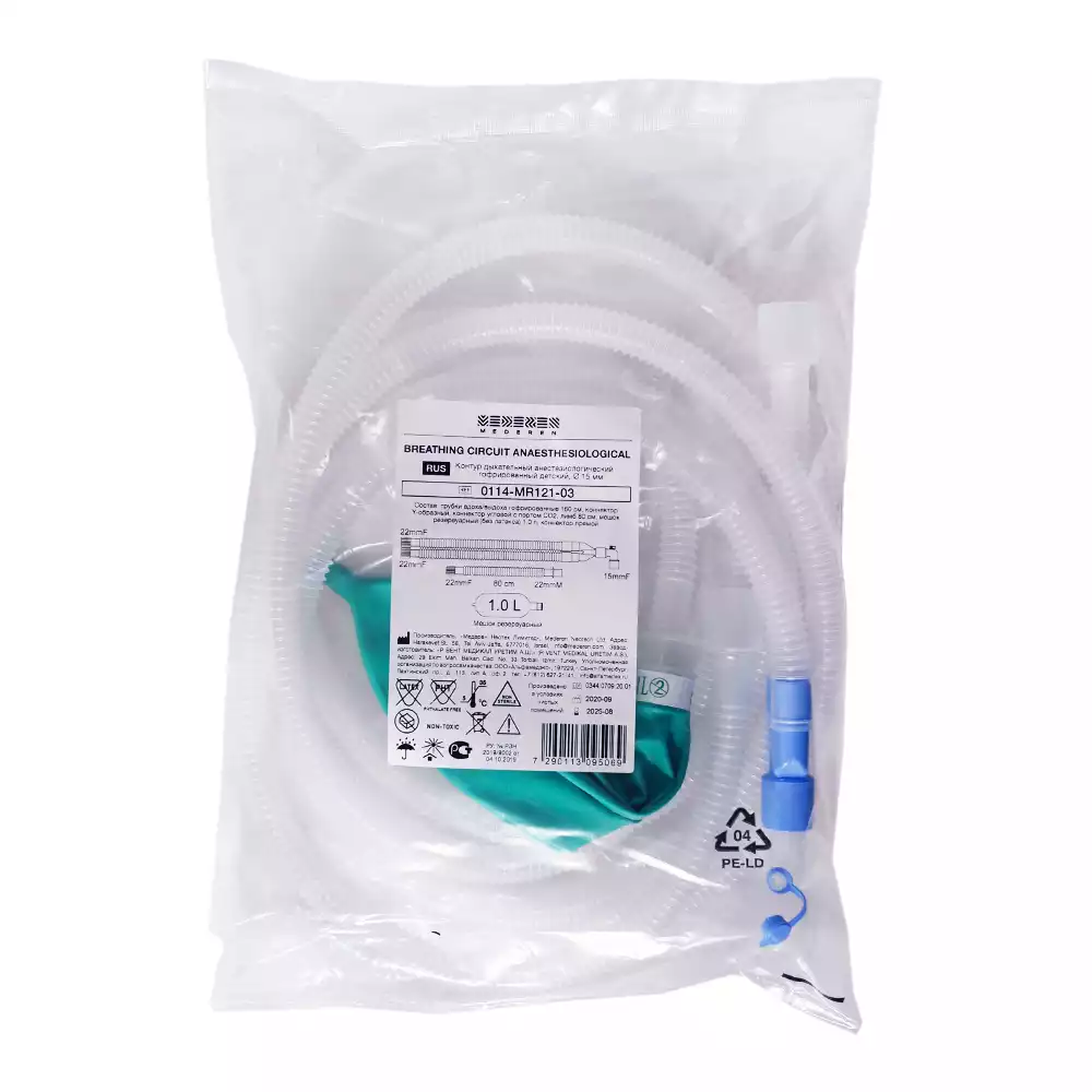 Дыхательный контур гофрированный 15мм + лимб 0.8м + мешок резервный 1л + трубка 1,6м, детскийMederen Neotech Ltd. (КИТАЙ)
