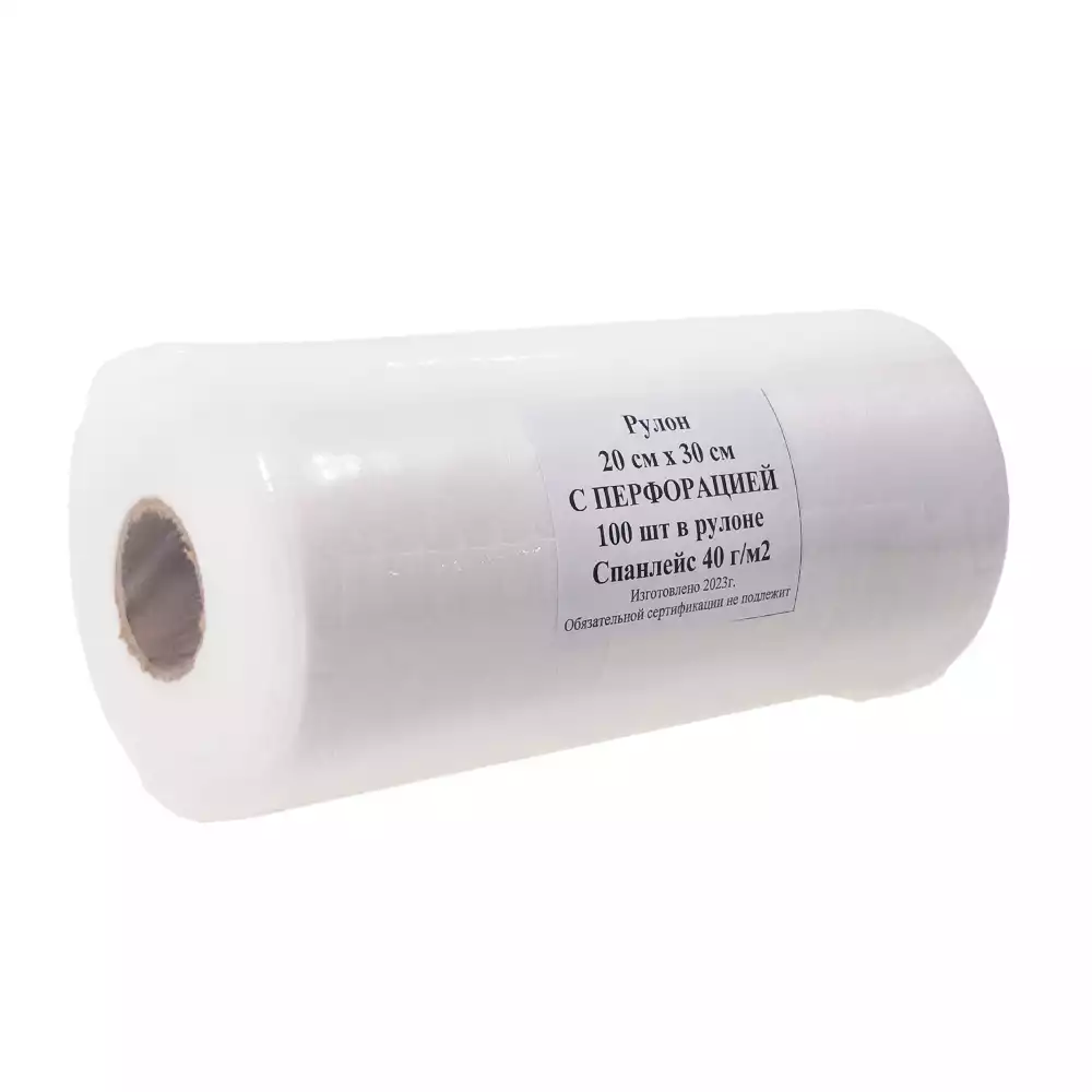 Рулон гигиенический, размер салфетки 20*20см, №100, материал спанлейс 40г/м2, с перфорацией, белый, с РУИнмедиз (РОССИЯ)