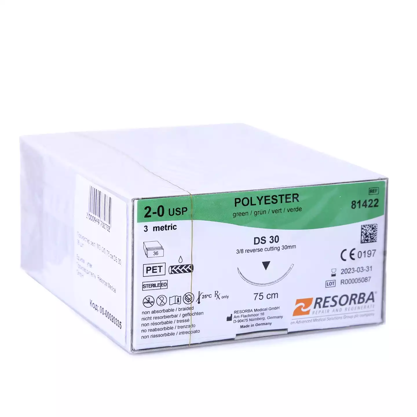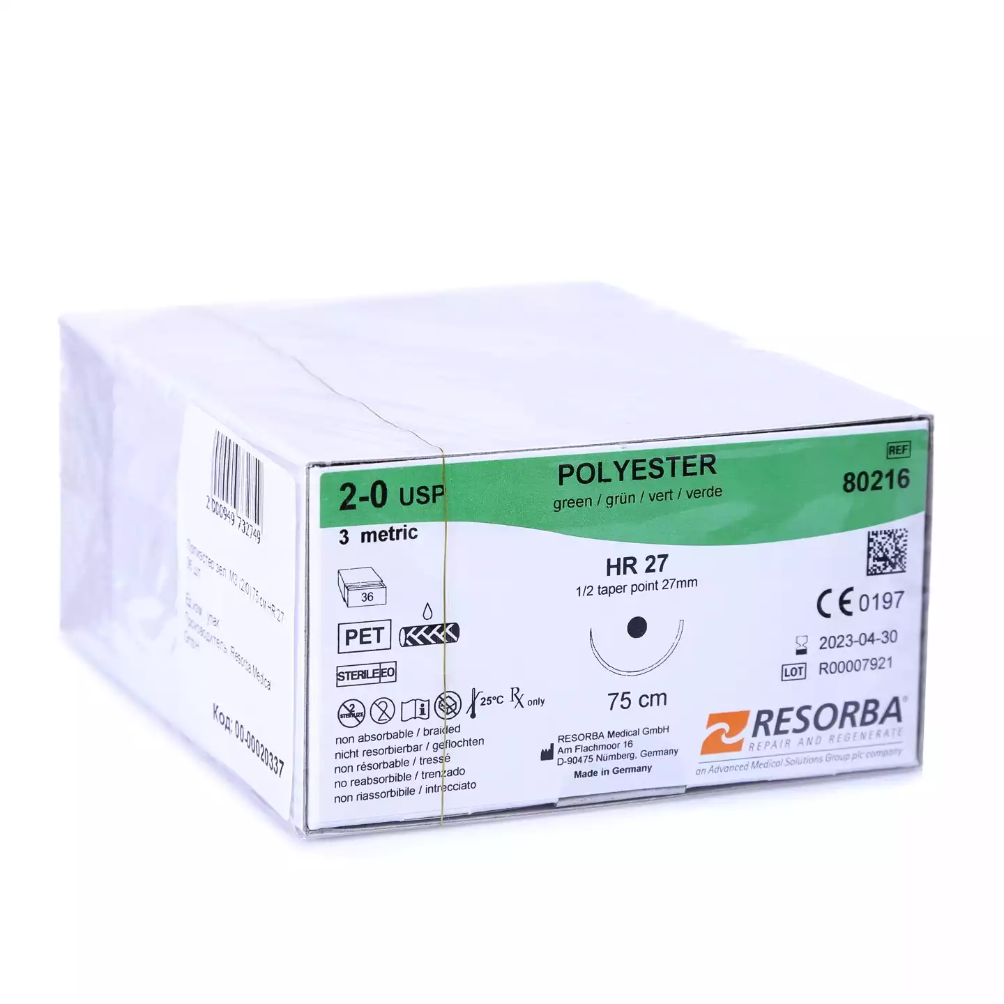 Ай- кол 3/0 (2), длина нити 70см, игла 1/2 круглая колющая 20мм, упаковка 36шт, SFN2437, Peters Surgical (ИНДИЯ)