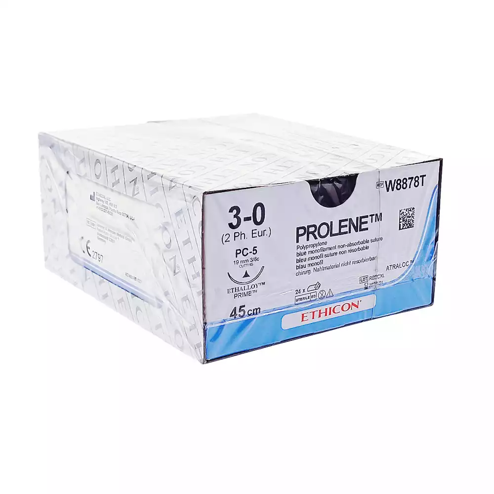 Пролен 3/0, длина 45см, игла режущая 19мм, синий, упаковка 24шт, W8878T, ETHICON (БЕЛЬГИЯ)