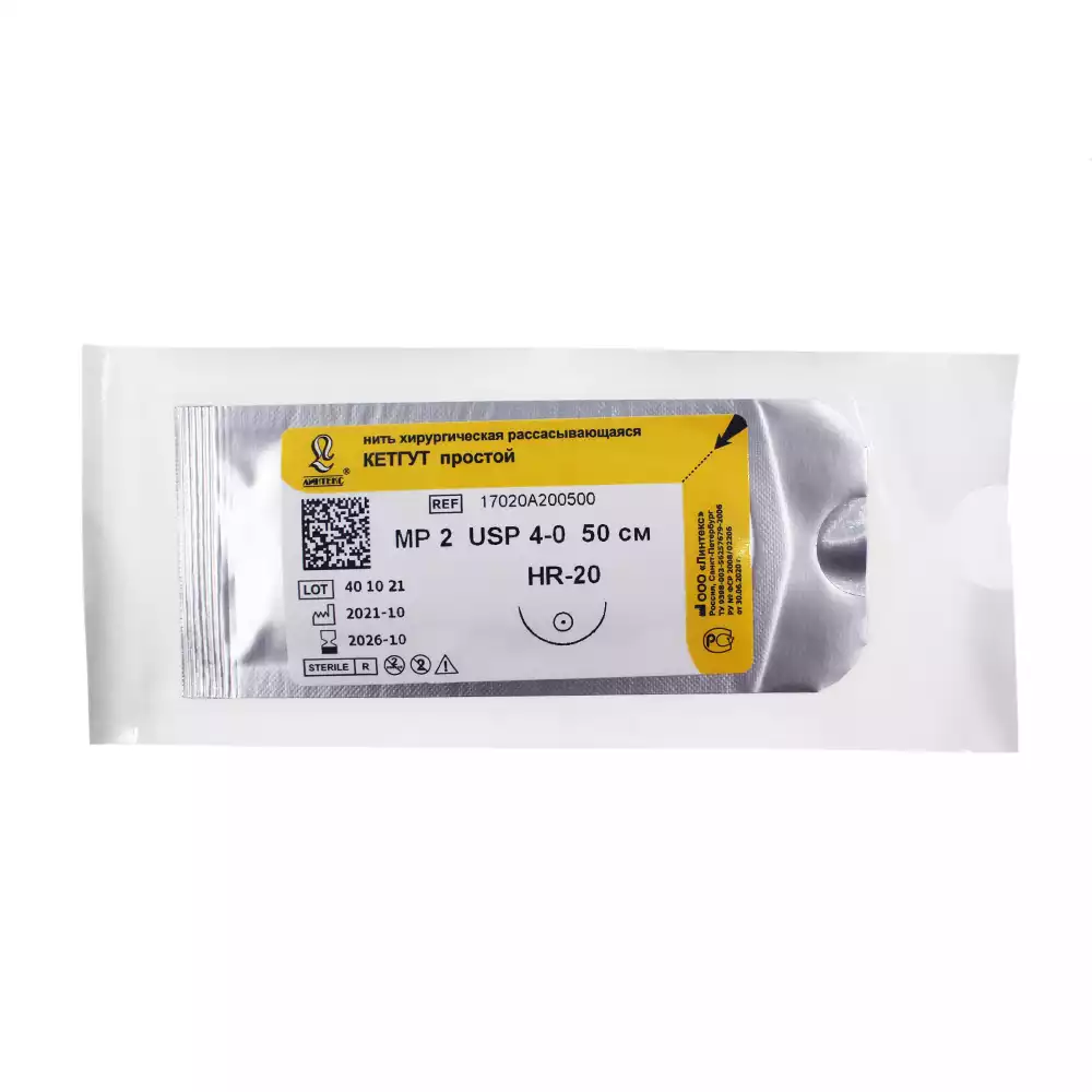 Кетгут полированный стерильный №4 в ампулах 150см, 200911, Татхимфармпрепараты (РОССИЯ)