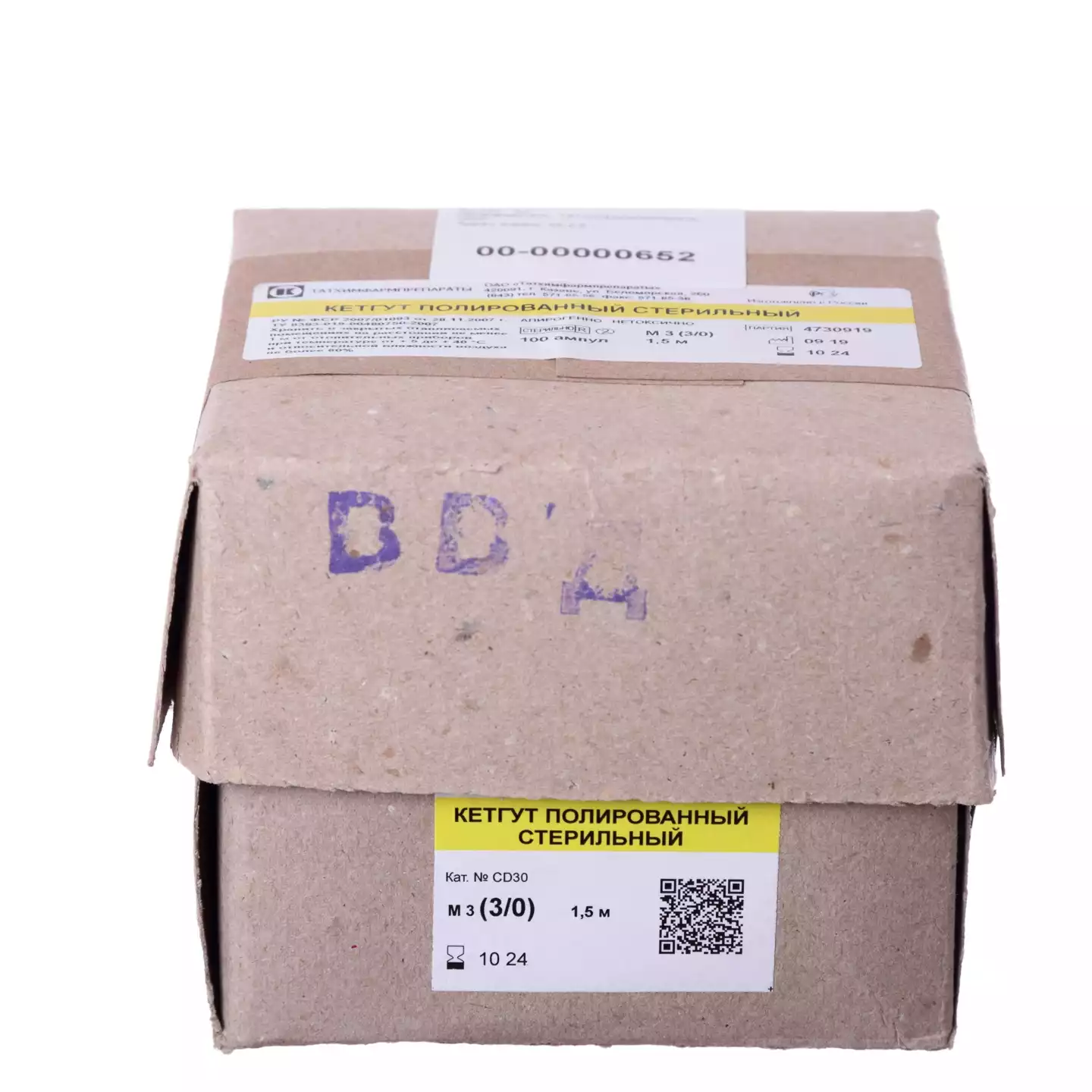 Кетгут полированный стерильный №3 в ампулах 150см, CD30, Татхимфармпрепараты (РОССИЯ)