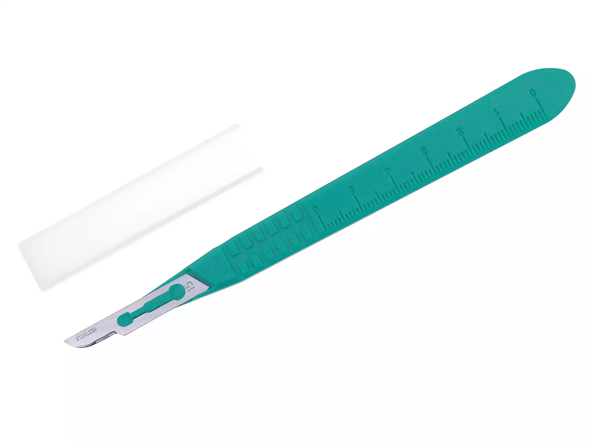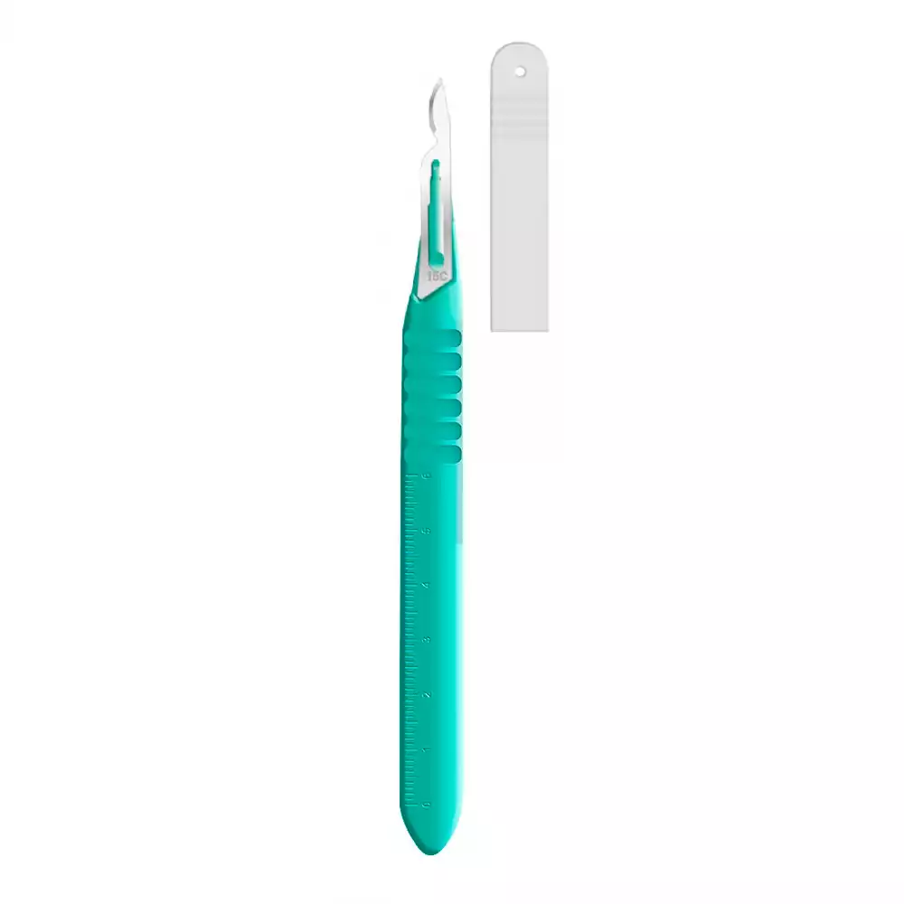 Скальпель с пластмассовой ручкой №15, нержавеющая сталь, одноразовый стерильный, Ribbel International Ltd. (ИНДИЯ)