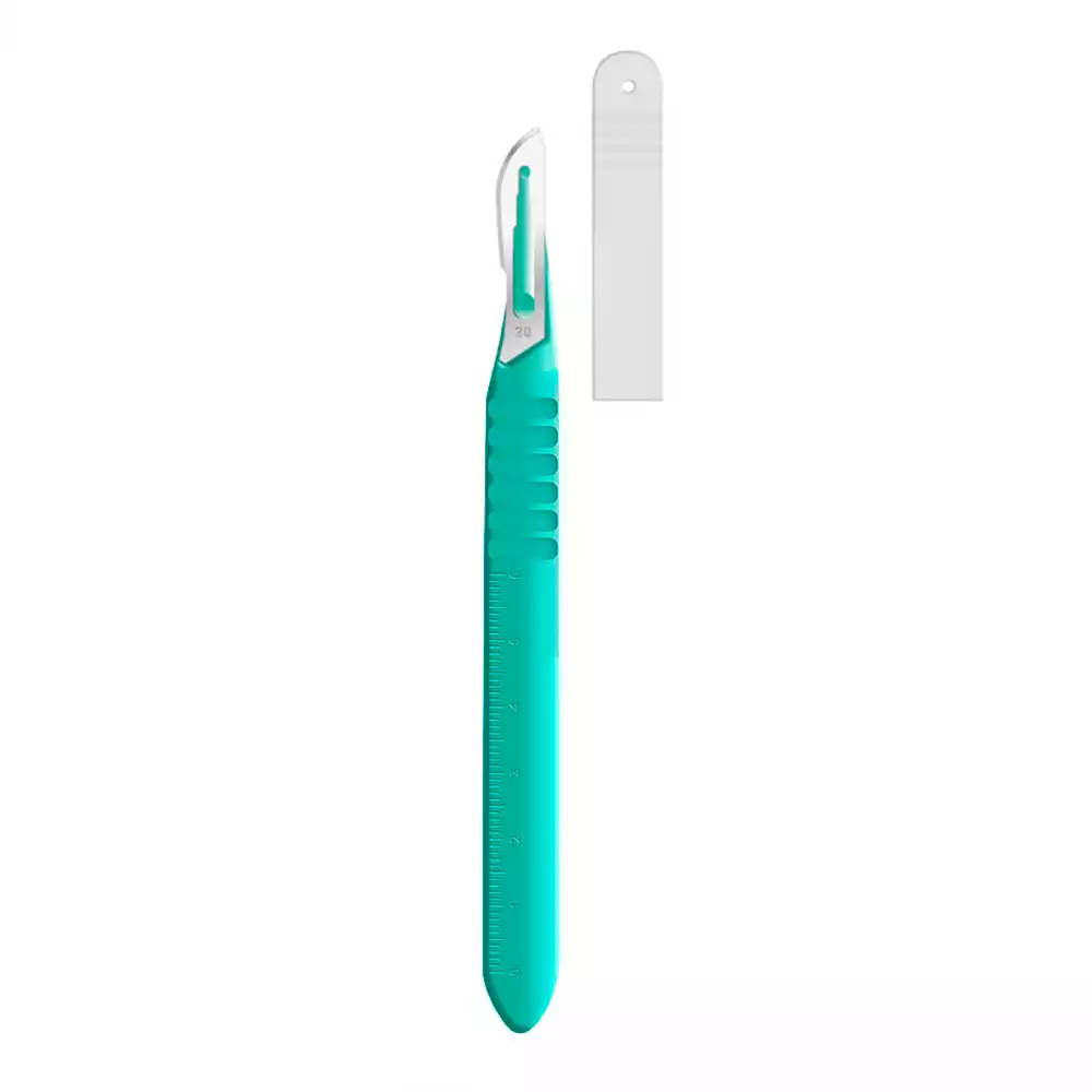 Скальпель с пластмассовой ручкой №24, нержавеющая сталь, одноразовый стерильный, Ribbel International Ltd. (ИНДИЯ)