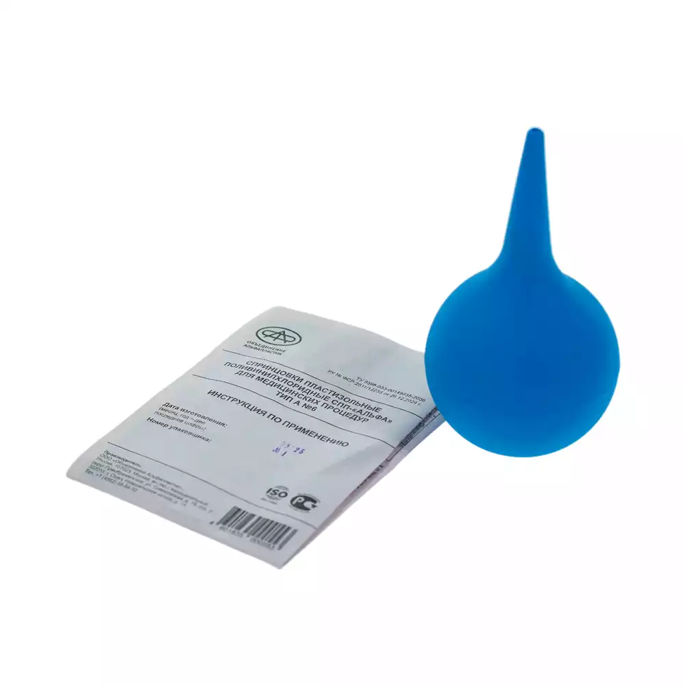 Спринцовка резиновая, тип А, размер №1 с мягким наконечником, объем 35мл, Объединение Альфапластик (РОССИЯ)