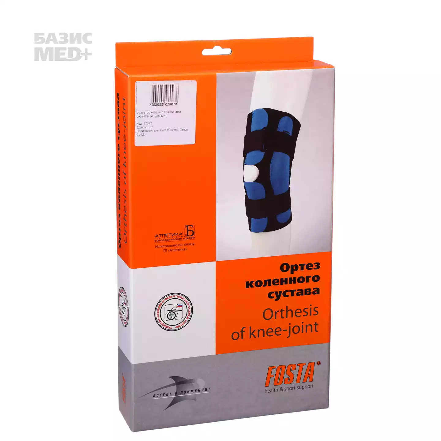 Фиксатор колена с пластинами разъемный FOSTA (one size), цвет чёрный, универсальный, Irufa Industrial Group Co Ltd (ТАЙВАНЬ (КИТАЙ))