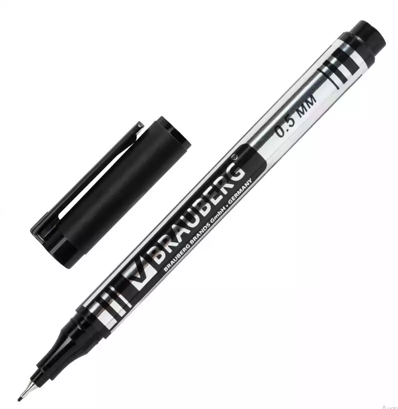 Маркер перманентный BRAUBERG "Jet", ЧЕРНЫЙ, супертонкий металлический наконечник 0,5 мм